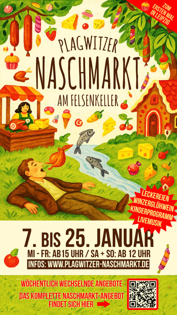 Vom 7. bis 25. Januar verwandelt sich der Felsenkeller in den 1. Plagwitzer Naschmarkt – einen neuen kulinarischen Wintermarkt abseits des üblichen Mainstreams.