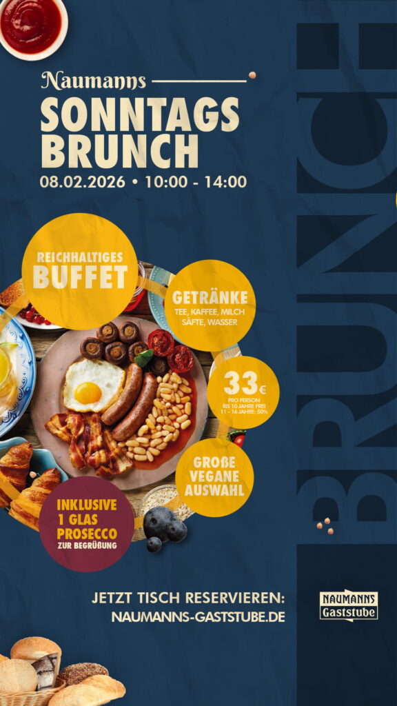 Der Sonntagsbrunch im Februar findet am 08.02. statt. In gemütlicher Atmosphäre servieren wir euch feinste Leckereien aus unserer Küche. Mit Freunden und Familie könnt ihr euch in der Naumanns Gaststube verabreden und müsste euch zwischen Team Süß un d Team Herzhaftnicht entscheiden.